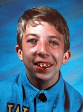 Yeux bleus, sourire taquin