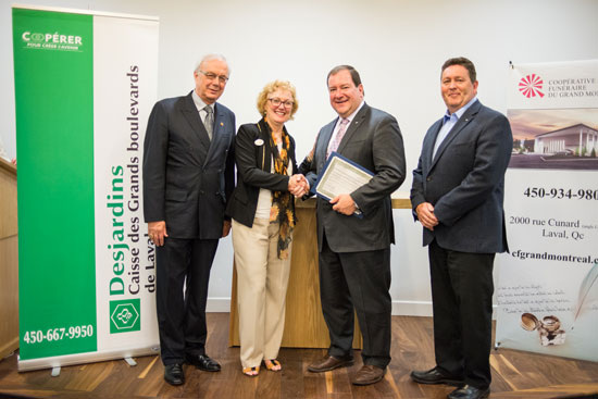 La Caisse Desjardins des Grands Boulevards de Laval a su démontrer toute sa confiance envers la Coopérative funéraire par l'achat de parts privilégiées.