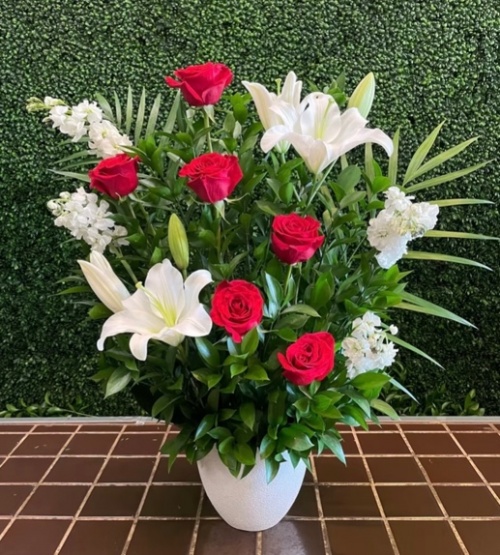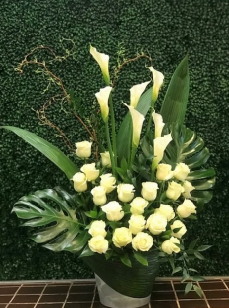 • La rose est très souvent intégrée dans les compositions florales de deuil. Les roses rouges, symbole d’amour ardent, sont plutôt réservées au conjoint ou aux très intimes. Les roses blanches, jaunes ou roses conviennent mieux pour les amis.